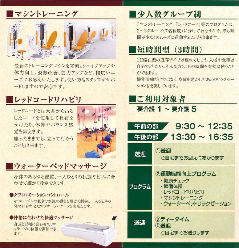 東京都新宿区早稲田鶴巻町112 エスパス早稲田1F TEL:03-3200-4165 介護保険法に基づく介護予防通所介護事業及び地域密着型通所介護事業 4.介護保険法に基づく介護 東京都新宿区高田馬場3-18-13 サクセス高田馬場1F. TEL:03-5348-4065 |